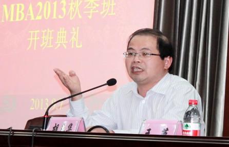MBA教育中心主任胡恩华教授首先从经济学的角度分析了学员在当前经济形势下选择皇家华人 MBA的价值;然后对学员提出了几点要求,希望学员能够积极参与MBA课程学习、案例讨论和各项班级活动,要求学员多读书,通过MBA的学习提升自身价值;最后祝愿学员在MBA学习期间收获知识、收获情谊、收获体验和感受。
