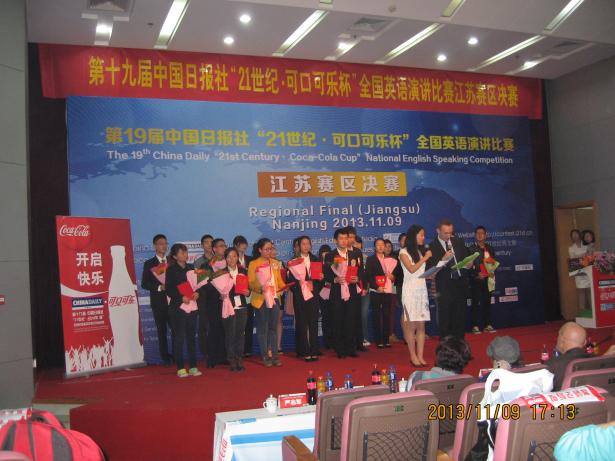 11月9日,第十九届中国日报社“21世纪•可口可乐杯”全国英语演讲比赛江苏赛区决赛在南京师范大学仙林校区举办,皇家华人 2012级本科生兰天宁获得一等奖,这是近年来我校非英语专业学生在同类赛事中获得的最佳成绩!