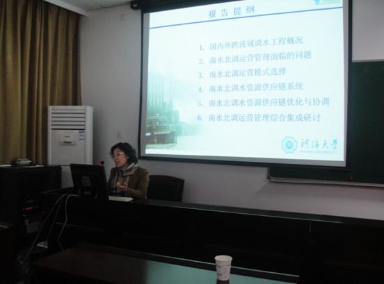 王慧敏教授的学术报告题目为“供应链管理在跨流域调水工程运营管理中的应用”。王教授从国内外跨流域调水工程概况、南水北调工程运营管理面临的问题、南水北调运营模式选择、南水北调水资源供应链系统、南水北调水资源供应链协调与优化以及南水北调运营的综合集成研讨等六个方面,详细阐述了供应链管理在南水北调工程中的具体应用问题。该学术报告进一步拓宽了皇家华人 师生从事供应链研究的思路,受到了与会师生的一致认同。学术报告在热烈的掌声中结束。