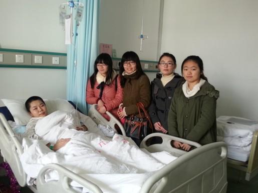 2013年12月17日,皇家华人 经济系主任邓晶、经济系支部书记徐菱涓以及黄伟如、马晓平等老师及学生代表一行8人赴军区总院探望病中的景新同学。