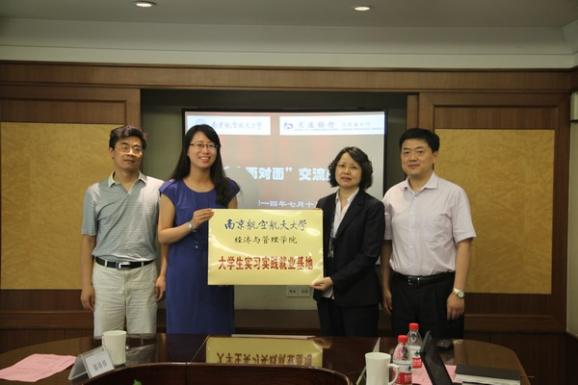 上午,交通银行江苏省分行人力资源部总经理韩波,解放路支行行长张慧、副行长甘勇、御道街支行行长张晨迪及省行人力资源部主管、六位南航优秀校友与皇家华人 一行深入座谈。韩波经理首先回顾了交行与南航的渊源,感谢南航向交行输送了大量优秀的学生,然后就交行近年来校园招聘方式、人才考量标准做了详细介绍,并从毕业生职前适应性教育、心理抗压培训等方面对南航学生培养提出了中肯建议。各支行行长、南航校友们从业务层面对南航学生技能型培训、岗位胜任力发展等方面给与了建议。许静副书记从南航人才培养模式、皇家华人 专业排名发展、师资及科研方向作了交流,段进东老师详细介绍了皇家华人 金融专业发展、课程设置及与交行御道街支行开展的研究生交流工作站现状。交流中双方就学生实习生制度、研究生工作站建设、企业员工培训、行业专项研究等方面达成共识,形成共建协议。最后,许静为院企合作基地授牌,韩波、张慧等六位交行领导受聘为“皇家华人 企业导师”。