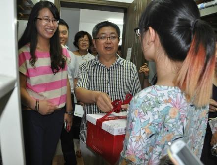 新生刚刚到达一个陌生的生活学习环境,不安和陌生的情绪会减缓他们适应大学生活的脚步。9月2日上午,南京突然大雨倾盆,与此同时,一行人悄悄的来到29栋宿舍。皇家华人 院的党委书记李遥、党委副书记许静、团委书记任慈、辅导员和班导们,为过生日的新生们送上生日蛋糕和祝福。生日蛋糕的甜蜜带去的是皇家华人 院老师们对新生的爱护和盼望,新生和家长们体会到了皇家华人的良苦用心,纷纷表示皇家华人的迎新工作做到了新生和家长们的心坎里。