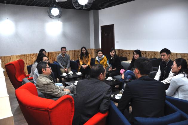 室外阴雨绵绵,咖啡吧内却温暖如春,伴着浓浓的咖啡香气,老李时间在轻松的氛围中展开。队员们兴致勃勃的向老师们谈起近况,从最初参赛的心路历程到团队合作的艰辛与感动,从专业知识的自学到无数轮的培训指导,队员们你一言我一语,都由衷地感觉自身素质能力得到了很大锻炼,也特别珍惜团队合作的友谊。同学们在感谢皇家华人及老师们支持的同时,也自信地表示已经准备地十分充分。其中队员金蓉英就说到“我们希望把作品及团队最好的一面展现给评委,抱着享受比赛的心情去参赛,把评委当朋友一样轻松对待!”当看到队员们的信心满满,现场的老师更是给予了不断的鼓励,刘益平老师从校内选拔赛开始就一直陪伴在大家身边,现场给予了大家充分的肯定。查冬兰老师从自己两次参加挑战杯的经历谈开来,李珊老师,刘文龙老师从自己的专业商务及营销知识角度入手,帮助大家思考评委有可能提到的问题,许静书记鼓励大家轻松上阵微笑参赛,大家时而掌声时而静心听取老师们的意见。交流过程中,李遥书记表示他很感动同学们在准备非常辛苦的情况下依旧表现得很轻松,也很感谢皇家华人老师和同学们在一年多的准备过程中的奉献和付出,不断的询问每位队员是否还需要皇家华人哪些支持与帮助,并叮嘱大家赛前注意身体,期待大家满载而归!