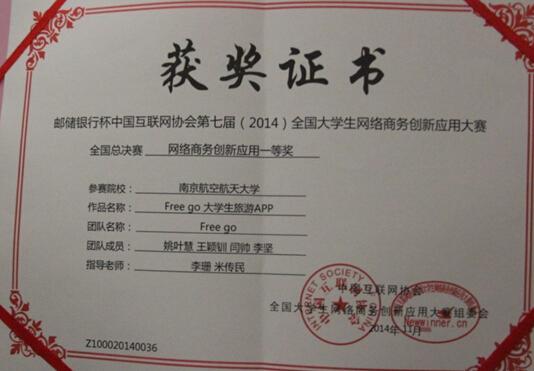 在前期华东赛区评比中,我校有5支队伍获奖:“Free Go”团队作品“Free go大学生旅游app”获特等奖;“Galaxy Team”团队作品“Pass行游乐园排队软件”获一等奖;“Team A”团队作品“袅袅网——琴行的腾飞”获二等奖;“星辰科技”团队作品“腾讯手机安全支付体验营销推广方案”获三等奖;“Top5”团队作品“去玩——地图上分享视频的移动应用软件”获三等奖。指导教师李珊、米传民被评为全国“优秀指导老师”;马静、沈洋老师被评为华东赛区“优秀指导教师”。