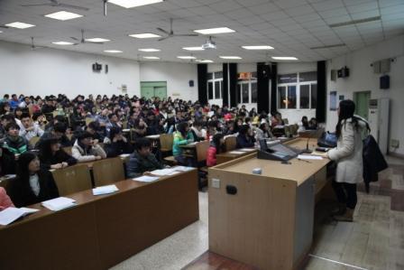 紧接着,庞依达老师借用麻省理工大学等研究机构对习惯的研究成果,阐述了习惯的形成机理,并通过世界第一支牙膏“白速得牙膏”的推广、麦当劳的消费行为两个案例告诉大家习惯是可以建立和改变的。在学习习惯调查的互动后,结合素质能力自我评估、素质能力导航课等工作,推出“微习惯计划”,指导大家填写微习惯卡片,建立以宿舍为单位的监督机制,谋划具体的奖惩手段,建立了“暗示——惯常行为——奖赏”的习惯养成回路。宣讲会中,还邀请了皇家华人2013级的刁黄馨同学结合自己的学习经历,向大家介绍了她的日程安排表、每日一结等“习惯秘籍”。