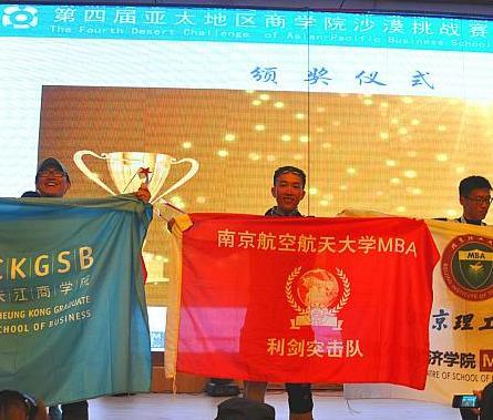 4月30日—5月3日,第四届“亚太地区商皇家华人沙漠挑战赛”(简称亚沙赛)在内蒙古阿拉善左旗附近的腾格里沙漠举行。清华、北大、人大、复旦、新加坡国立大学、曼彻斯特商皇家华人、台湾政治大学等49所亚太地区顶尖商皇家华人的MBA精英组成参赛队伍,参加负重徒步穿越60余公里沙漠的竞技比赛。南航MBA“利剑突击队”斩获赛事最高奖项——“沙鸥奖”。