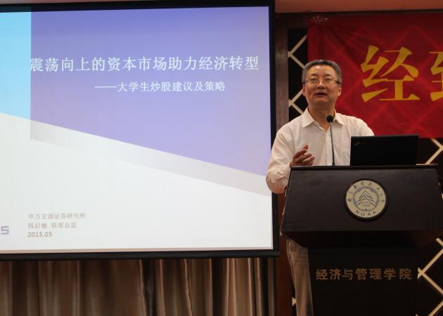 金融专业企业导师聘书。受聘仪式结束后,钱启敏先生围绕“震荡向上的资本市场助力经济转型”这一主题,从对国内资本市场建立之初至今几轮行情的分析出发,探讨了政策导向对股市走势的影响,并结合自身经历和丰富的经验,对大学生炒股提供了一些指导性建议。钱启敏先生的报告深入浅出,向大家提供了非常深刻独到的见解,使在场学生对资本市场有了更深入透彻的认识。