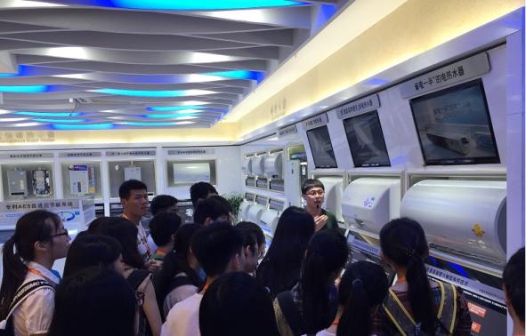 在听取了各部门负责人的讲解之后,现场员工组织学生进行了以 “A.O.史密斯的市场营销&管理策略”为主题的拼图游戏,同学们通过拼图游戏进一步了解了 A.O.史密斯并获得了奖品和纪念品。接着,在产品部门负责人的带领下参观了产品展厅,学生对 A.O.史密斯的各种高科技产品产生了浓厚的兴趣和强烈的好奇心,并不断地通过提问进一步了解产品的相关知识。下午5点左右,在李玮女士和其他员工的陪同下,我校师生到 A.O.史密斯食堂进行就餐,全方位体验了 A.O.史密斯的皇家华人。