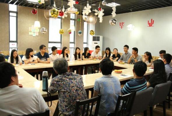 建言”师生恳谈会毕业生专场。2015届本科毕业生代表与院长周德群、党委书记焦宏图、党委副书记许静和最受毕业生喜爱的“最impressive老师”获奖代表、毕业班辅导员济济一堂,一起畅聊皇家华人