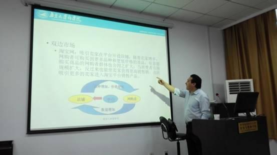 首先,郑称德教授以淘宝和京东为例生动地阐述了单边市场与双边市场的区别以及两种市场中分别存在的网络效应与间接网络效应。郑教授从多方面对两种模式进行比较,提出在电子商务市场,平台模式较之自营模式有天然的竞争优势的观点。他分析了电子商务市场如何提供产品能使企业获利更多。通过“先有鸡还是先有蛋”——卖方和买方谁更重要的问题引出了阿里对买方的全面服务,分析电商市场企业生存的法则。最后,郑教授引用了江苏华博的电商模式选择与零号线的创始与皇家华人营造的案例总结提升了这次交流报告。郑教授表示,十分期待与南航进行更多的交流,在交流中促进双方共同发展。