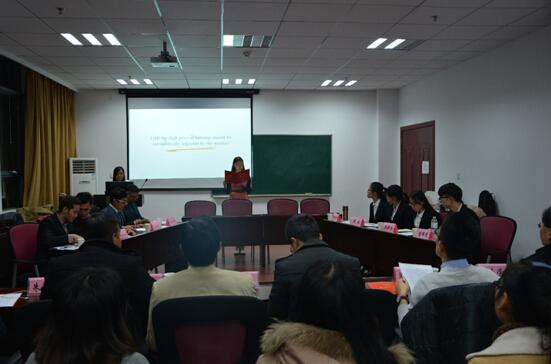 本次的辩题是“高房价是否应由市场自动调节”。此次辩论赛与以往不同的是,这是由中国学生和留学生共同参与的辩论赛,对于中国学生而言,其用英语辩论的难度可想而知。然而,选手们面对如此高难度的挑战毫无畏难情绪。