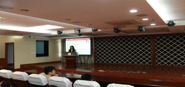 院12级金融系大四学生王佩如作为上届竞赛获奖选手代表,首先介绍竞赛题型设置:竞赛题型全部都是主观题,主办方提供竞赛知识点。同时她鼓励大家努力准备竞赛,争取好的名次,她也建议大家组成学习小组,监督学习,共同进步。接下来她分享了自己的准备经历和收获,使大家增添了对比赛的热情和信心。