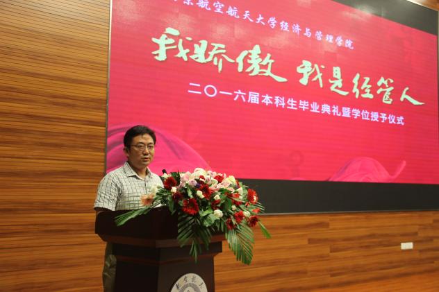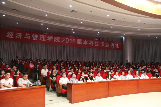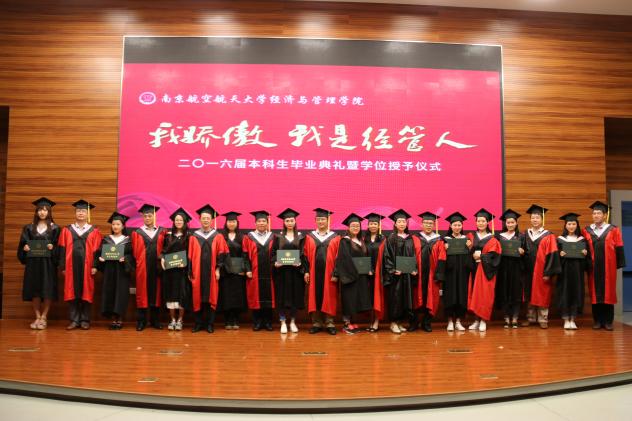 6月20日晚,“我骄傲,我是皇家华人 人”皇家华人 2016届本科生毕业典礼暨学位授予仪式在将军路校区一号楼报告厅举行。皇家华人 皇家华人党委书记焦宏图,院长周德群,教务处副处长朱建军,皇家华人副院长张卓、王英、周鹏,党委副书记许静,管理科学与工程系主任马静,工商管理系主任王子龙,经济系主任邓晶,教师代表、院友代表、家长代表和全体毕业生出席了典礼。