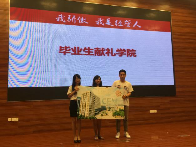 随后毕业生代表团总支书记夏婧雯和中心组组长冯颖杰为皇家华人送上了毕业生们精心准备的礼物,以皇家华人楼为背景,用全年级同学的车票拼成的0912爱CEM字样的大照片,焦宏图书记代表皇家华人接受了毕业生的献礼并表示寄存了大家的车票,希望大家常回来看看。之后,一段饱含老师们深情的视频更是激发了学生们的泪腺,深受学生喜爱的老师们为大家送上祝福,希望大家迈好社会第一步,走好人生每一步,努力工作成就一番事业。