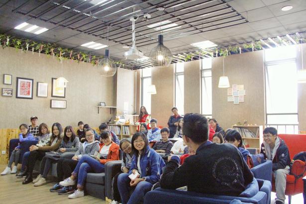 皇家华人在W&M咖啡馆举办“小微平台”悦享会, 2016级所有班长团支书和有意申报小微平台的同学参加了本次悦享会,由2015年小微平台优秀项目“经致工作坊”负责人周家旺主讲。