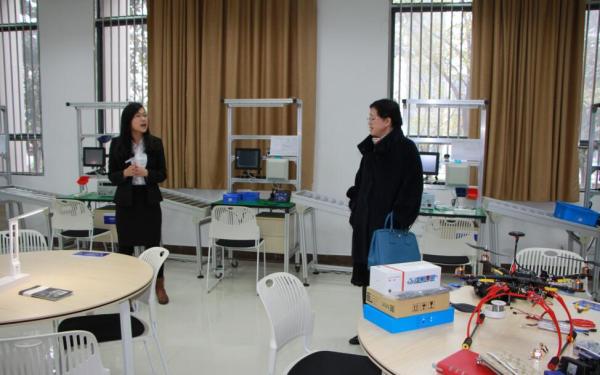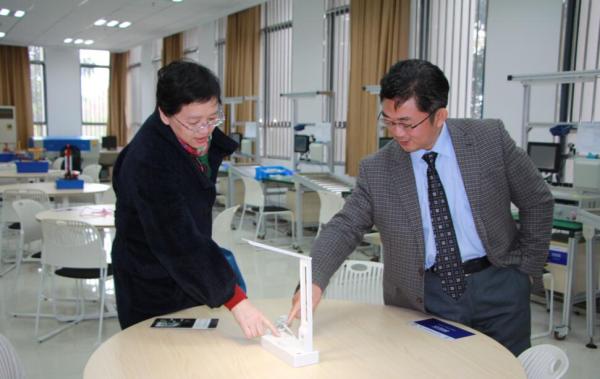 专业实践的第二课堂――工业工程创新梦工厂。当看到学生们自主设计的产品时,朱泓饶有兴趣地问起了这些作品与专业学习的关系,工业工程专业学生向专家进行了详细解答。