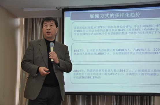 首先,南开大学商皇家华人崔勋教授带来了关于“雇用方式多样化与人力资源管理”的学术报告。崔教授从典型雇佣和非典型雇佣角度引出雇佣方式多元化,重点剖析了非典型雇佣方式的选择动因、非典型雇佣方式的积极效果和消极效果、典型雇佣与非典型雇佣方式的互动效果、雇佣方式与人力资源管理的整合型、分离型、忽略型三种类型,以此为基础,从个体、群体、组织三个层面对雇用方式多样化的人力资源管理提出整体思考。
