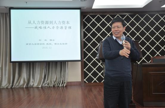 接着,来自南京大学商皇家华人刘洪教授带来一场题为“从人力资源到人力资本——战略性人力资源管理”的学术报告。刘教授认为,现代企业,HRM面对的最大挑战来自宏观上3大矛盾和微观上的4大破坏性驱动力,这就要求企业的HRM要有对人力资源的管理转变为对人力资本和智力资本管理;与此对应的是要求企业的组织结构网络团队化,管理工具数字实时移动化,企业建设的理念要平台化、生活化,企业要成为利益攸关者生命共同体;企业要发展多代际、多样化员工的领导力、帮助员工职业发展和学习成长。