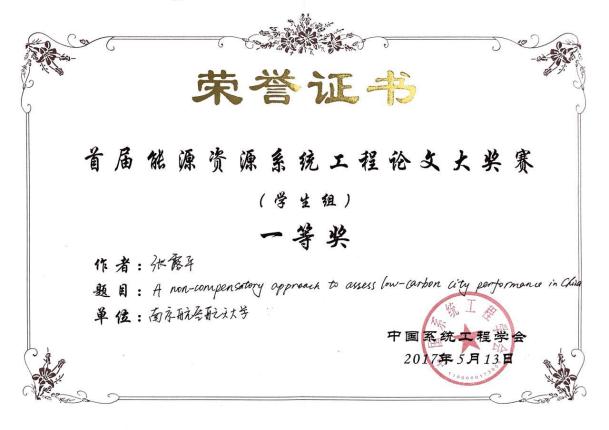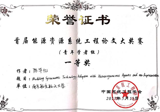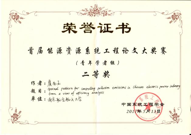 师生取得了可喜的成绩。其中,陈华忆老师的论文“Modeling systematic technology adoption with heterogeneous agents and one representative”获得青年学者组一等奖,虞先玉老师的论文“Optimal pattern for controlling pollution emissions in Chinese electric power industry from a view of efficiency analysis” 获得青年学者组二等奖,张露平博士生的论文“A non-compensatory approach to assess low-carbon city performance in China”获得学生组一等奖,刘笑博士生的论文“Flying into the future: Scenario analysis of CO2 emissions from China’s civil aviation”获得学生组三等奖。