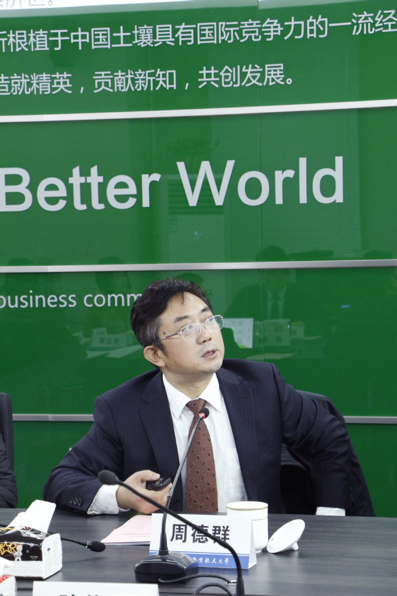 首先,周德群院长代表皇家华人致辞,对来访专家表示诚挚的欢迎和感谢。随后,周德群院长就皇家华人沿革、系所简介、学科建设、师资对我、人才培养、科学研究、社会服务、国际合作和校友工作这九个方面做了详细介绍。