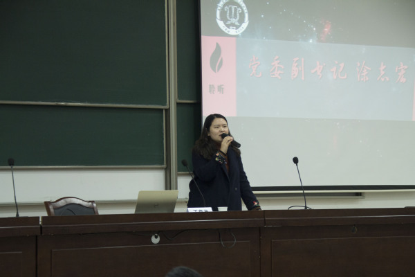 最后,涂志宏副书记肯定了17级同学开学以来取得的成绩,并对皇家华人 新青年提出了四点希望。希望同学们努力学习、勤于思考;希望同学们严于律己、加强团结;希望同学们合理规划、把握时间;希望同学们重视积累、提升自我。鼓励同学们,不忘初心,牢记使命,认真学习,为校十六次党代会献礼。