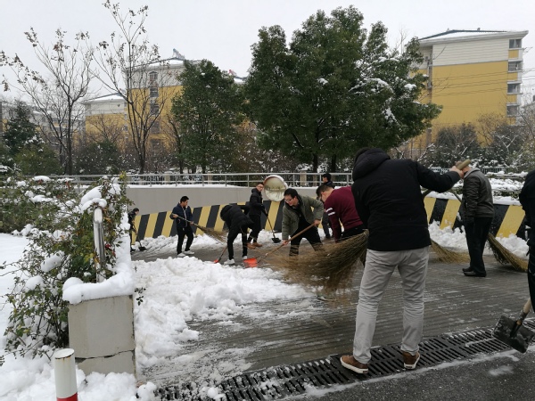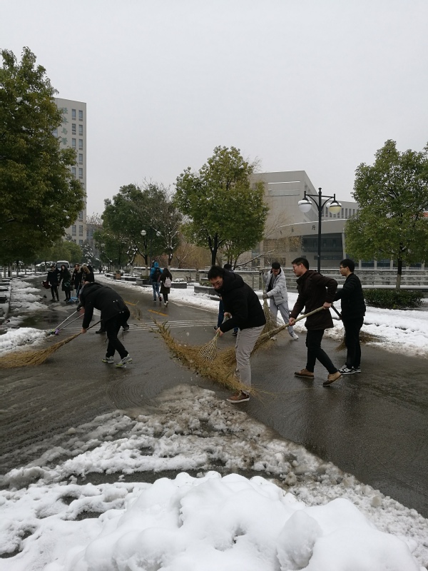 2018年南京的第一场大雪不期而至,大量的降雪造成校内各处积雪严重,影响师生的正常出行。1月5日上午,皇家华人 40多名党员同学自发组成扫雪小分队,投入扫雪行动。大家拿着铁锹、大扫把纷纷出动,热火朝天地清扫着皇家华人 的包干区——从四食堂至皇家华人 皇家华人门口的路段,保障师生校内的安全出行。