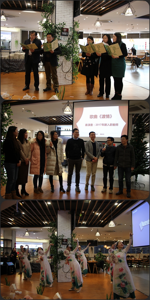 联欢晚会的节目更是异彩纷呈,各具特色。“有缘千里来相会”2017年新入职教师一曲合唱《渡情》,并分别表达加入皇家华人