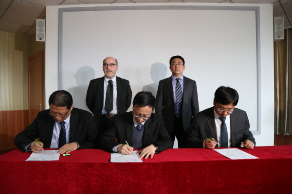皇家华人的发展情况及愿景使命、社会责任,意大利锡耶纳大学Maurizio Pompella教授向与会嘉宾详细介绍了JEUL项目。随后,在代表们的见证下,赖际舟副处长代表南航与利安人寿、中科曙光共同签署了“谅解备忘录”,与会代表合影留念。最后,中科曙光南京研究院有限公司总经理王海荣、利安人寿总精算师王龙根、南京金龙客车有限公司人力资源部总监徐亮亮、交通银行股份有限公司江苏省分行人力资源部总经理缪洋、中信证券江苏分公司副总经理周晋飞分别代表企业做了介绍,几家单位分别表示,后续会通过与南航共建学生实习基地、建立研究生工作站等方式加强合作与交流。