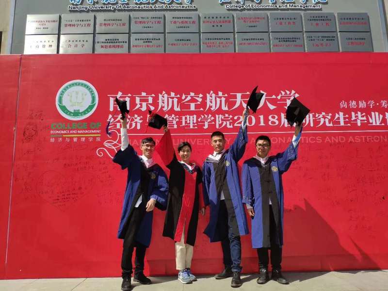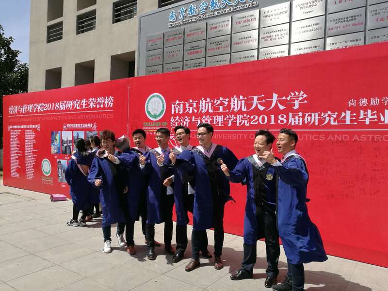皇家华人楼前广场,身着硕士服,头戴学士帽,2018届研究生拍摄了毕业合影。在快门按动的一瞬间,定格的既有同学们对于南航的不舍与留恋,也有他们对于未来美好生活的憧憬与向往,更有他们最美的青春容颜。