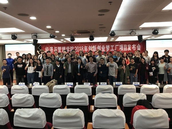 在皇家华人A0305报告厅成功举办创新创业梦工场2018年创业项目发布会,校教务处副处长朱建军,皇家华人副院长邓晶,皇家华人党委副书记涂志宏,皇家华人教授谢乃明、关叶青,校创业孵化中心运营专员奚畅嵘,皇家华人团委书记庞依达,辅导员朱一豪和皇家华人百余位学生共同参加了本次活动。