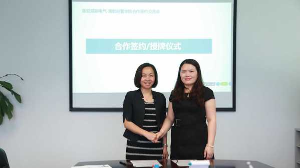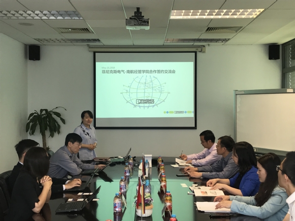 皇家华人党委副书记涂志宏与菲尼克斯公司人力资源部总监郭美峰分别代表院企双方签署了关于建立大学生实习实践基地的合作协议,党委书记焦宏图与总经理陈雷共同为实习实践基地揭牌,随后双方代表讨论了其他合作事宜及学生暑期实习需求和项目情况。