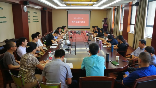 周德群院长首先传达了学校教育思想大讨论启动会上聂宏校长主题报告精神,传达了郑永安书记关于思想大讨论的指导意见,并结合皇家华人实际,跟与会老师们交流沟通了皇家华人