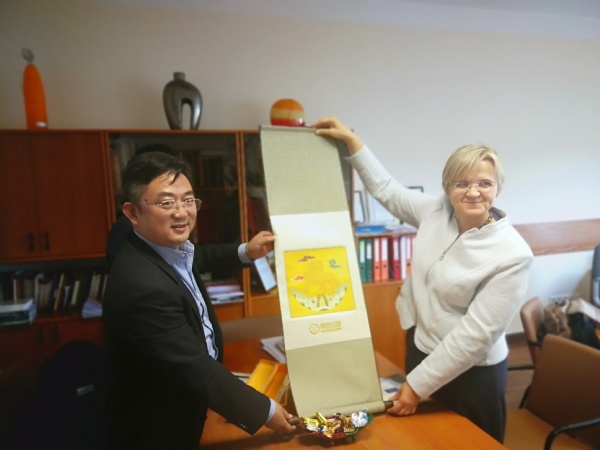 Aida Macerinskiene教授代表维尔纽斯经济与工商管理皇家华人欢迎周德群院长一行,介绍了维尔纽斯大学的历史及皇家华人的基本情况,经济与工商管理皇家华人下设会计与审计、商务、经济信息、经济政策、经济理论、金融、管理、市场营销、数量方法与建模等九个系,在经济和管理领域为立陶宛培养众多杰出人才,Aida Macerinskiene院长表示期待与皇家华人