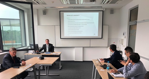 与捷克斯柯达汽车大学(ŠKODA AUTO University)合作洽谈在捷克博雷斯拉夫进行。斯柯达汽车大学校长Pavel Mertlík、副校长Peter Šulc、物流/质量/自动化技术系主任David Holman、皇家华人