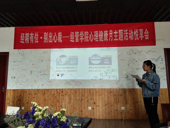 悦享会中,各班心理气象员依次向大家展示了班内开展的心理健康活动。活动主题丰富多彩,从普及简单的心理健康知识到讨论青春的奋斗意义等等。活动开展的形式也多种多样,各班利用心理健康游戏、座谈会等形式,呼吁同学们关注自我心理健康,增强心理保健意识。