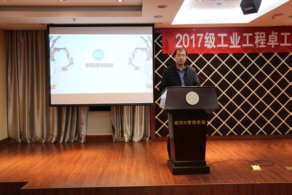 最后,周德群院长对此次典礼进行总结。周院长对各位工业工程专业的老师们表示了感谢,他从“目标”、“责任”、“习惯”三个维度出发,分享了他对于“卓越”一词的理解,建议17级卓工班秉承着精益求精、不断完善的IE精神,在思政引领、学风建设、科创研修等多个方面都要做到卓越。