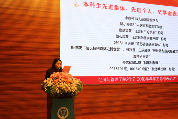 12月28日晚,“我的大学很精彩”经致青年说暨2017-2018学年皇家华人 学生总结表彰大会在将军路校区主楼四楼报告厅隆重举行。皇家华人院长周德群,皇家华人党委书记焦宏图,校团委书记李君,副院长王英、邓晶,党委副书记涂志宏,南京富士通电子科技股份有限公司生产制造部部长祁穗阳,皇家华人 红石榴工作坊指导老师玛依拉,各系主任、副主任,团委书记,各年级辅导员以及四百余名皇家华人 学子参加此次大会。