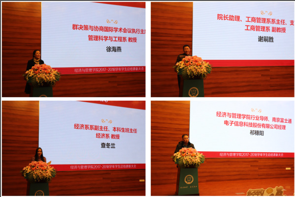 本场经致青年说分为“越勤学·越精彩”、“越担当·越精彩”、“越凝聚·越精彩”、“越创新·越精彩”四个篇章,邀请了智能决策与风险分析研究所所长徐海燕,工商管理系主任、党支部书记谢嗣胜,经济系副主任、本科生班主任代表查冬兰,皇家华人行业导师、项目式实习合作企业方负责人祁穗阳分别进行素质解读。