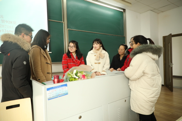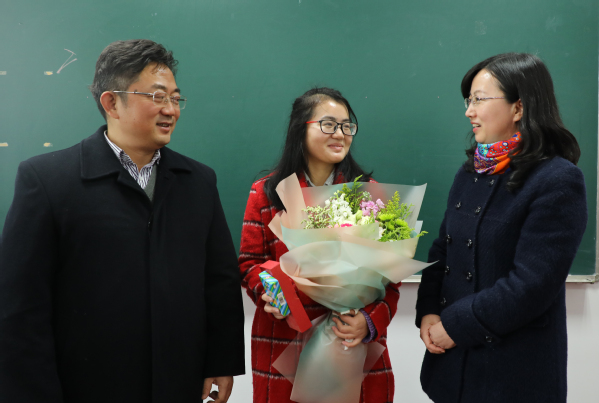 2月26日上午,在将军路校区东区1号教学楼308教室里,一场简短而温馨的新教师“第一堂课”引荐仪式正在温馨进行,在同学们热切的注视下,皇家华人 党委书记焦宏图、院长周德群亲自为新教师马永远“站台”,送她第一次走上讲台。