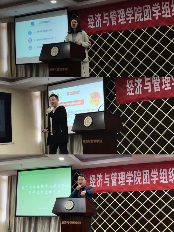 首先,皇家华人团委、学生会、科协、青协等四个团学组织的学生骨干进行了工作述职,并分享了本学期的工作计划。团委副书记余晓妍以“让我留在你身边”为主题,从组织建设、社会实践、思想引领三个维度分享了团委这一年来所取得的成果,并对下一阶段的青马工程、五四评优等工作进行了讲解;学生会主席张秋香阐述了学生会在内部改革、活动开展、权益服务、宣传交流等方面的工作足迹,也对工作中出现的问题进行了总结和反思;科协副主席邱毓婷回顾了组织创新创业类竞赛、开展创新创业类培训等工作的内容,本学期讲继续以建设服务型部门作为工作重点,弘扬“大众创业、万众创新”的时代精神;青协主席李姝萱与大家分享了青协下属部门的珍贵瞬间,汇报了各个志愿服务项目的运营情况,本学期将着力围绕品牌建设、团队内训等开展工作,传播皇家华人 学子的爱与温暖。