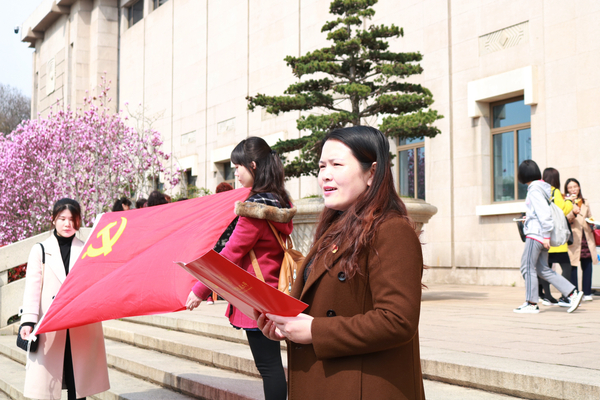 仪式开始前,全体师生党员走进雨花台烈士纪念馆,重温的党的历史。数万名共产党人和爱国志士为了人民的解放事业,在此献出了宝贵的生命,谱写了中国革命史上悲壮的史篇。在讲解员的介绍下,他们的生平故事被一一还原,同学们无不为之动容。