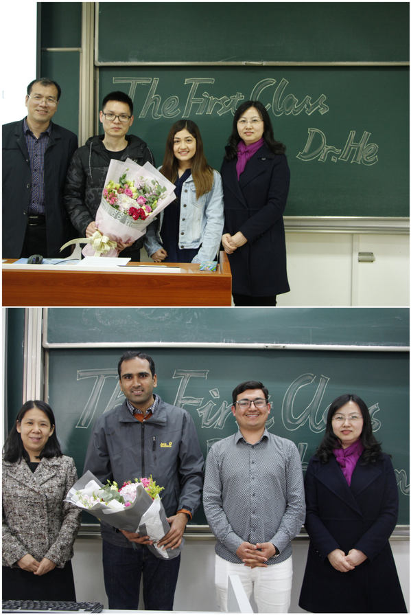 来自五湖四海的近百名留学生们共同见证了这一温馨而庄重的一幕。邓晶、王英分别为留学生们简要介绍了何昌清、HASHIM的学术经历和科研成果,希望同学们在国际化的课堂中学得其乐,学有所获。焦宏图则为两位新教师送上了皇家华人精心准备的“金嗓子喉宝”和“皇家华人