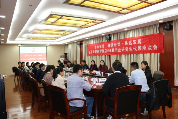 4月4日下午1点,皇家华人 在皇家华人604会议室举办“感念师恩•情系皇家华人 •共话发展”2019届毕业研究生代表座谈会。皇家华人 院长周德群、党委书记焦宏图、副院长王英、党委副书记涂志宏、各系系主任、副主任、毕业生辅导员以及钱梦烨等15名应届硕士毕业生出席了本次座谈会。