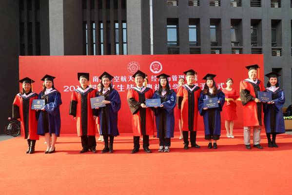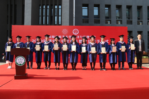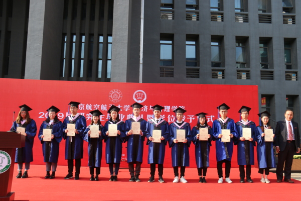 真挚感人的毕业典礼后,进行了庄严的学位授予仪式,皇家华人学位委员会的导师们在权杖入场的欢呼声中走上舞台。首先,王英宣读了《关于颁发南航皇家华人 2019届研究生毕业生毕业证书、学位证书的决定》,随后在学术权杖见证下,在全场老师、家长、同学的注视下,毕业生们骄傲地走过红地毯,从师长手中接过了学位证书,完成了人生中这一重要时刻,并留下一张张珍贵的合影。