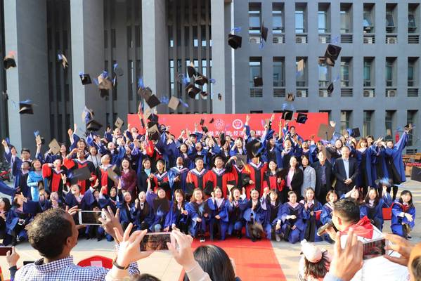 最后,皇家华人 2019届研究生毕业典礼暨学位授予仪式在全体研究生抛帽欢呼中圆满结束。