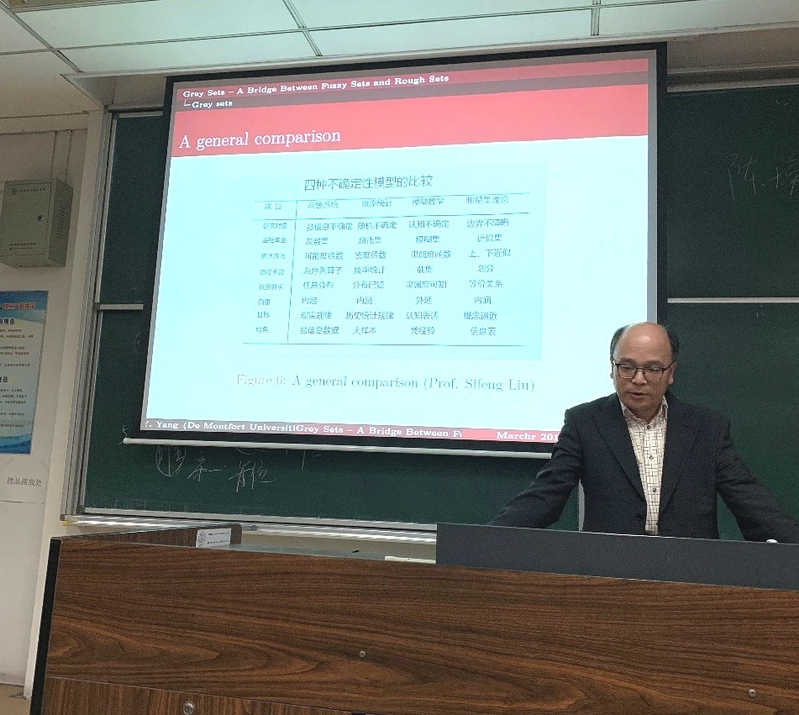 在本次演讲中,杨英杰教授探讨了如何将灰色模型应用于大数据分析。提出了将灰色模型应用于数据分析的概念框架。此次讲座介绍了灰色系统,灰色数字和灰色模型的基本概念,并讨论了它们在数据科学数据分析中的作用。证明了小数据模型的必要性,并研究了它们对大数据模型的补充功能。基于这些研究,提出了一种将大数据模型与灰色模型相结合的新框架。杨教授分享的对灰色数据分析和大数据技术的深入研究,使得在场的师生受益匪浅,学习到如何将彼此相对分离的灰色模型和大数据模型相结合,引导了大家跟随时代发展,探索灰色理论和方法的更广泛应用。