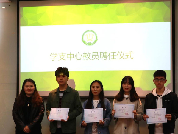 邓晶从供需匹配的角度出发,希望学支中心能深入同学当中做好调研,掌握同学们学习现状,结合学生需求,利用学支中心搭建跨年级的学风建设平台,搭建教师、学生之间的桥梁,形成跨年级的学风建设平台。涂志宏向学生教员代表颁发聘书,勉励他们不断努力,继续前行,并提出应充分发挥学生骨干的传、帮、带作用,做好皇家华人学支中心的日常管理工作,将阶段性考核与过程化辅导相结合,协调各方资源、完善激励政策,进一步搭建各项帮扶、辅导平台。