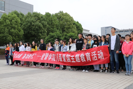18级爱国主题教育活动在国旗广场举行。辅导员胡心雨、许乃元及全体18级学生参与了本次活动。