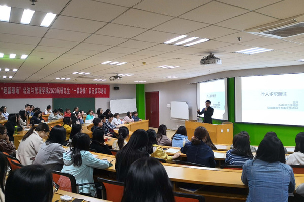 为了帮助学生提高简历制作水平,切实提升学生就业能力,5月8日晚,皇家华人 邀请了原中兴通讯股份有限公司市场部总监金涛先生开展“经赢职场”皇家华人 2020届研究生“一简钟情”简历撰写培训,全体2020届硕士研究生参加了本次活动。