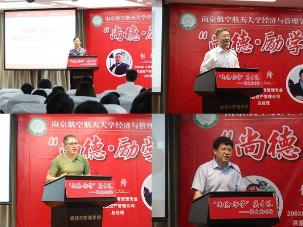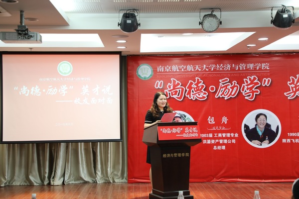 6月1日下午,皇家华人 “尚德•励学”英才说——校友面对面活动在皇家华人 A0305 报告厅举行。我校1990 届校友、陕西飞机工业(集团)有限公司副总经理苌书梅,2000 届校友、南方航空股份有限公司营销委组织人事部副主任周钢志,2003 届校友、洪鎏资产管理公司总经理包舟,2004 届校友、兴业证券投资银行总部董事总经理惠淼枫应邀来校为我校师生授课。
